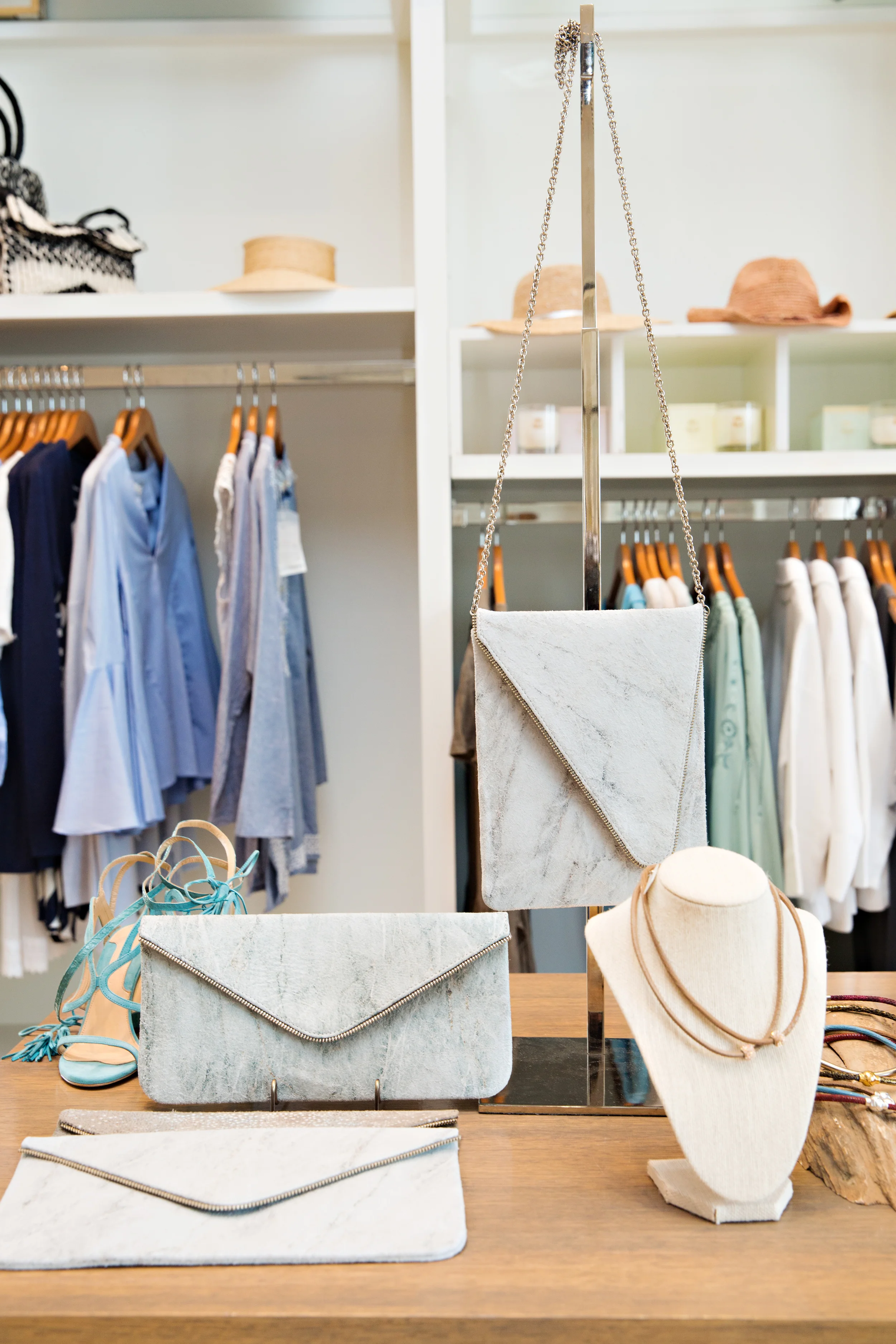 Helping a customer find something new. Yes, the shop has beautiful men's wear along with women's apparel too!